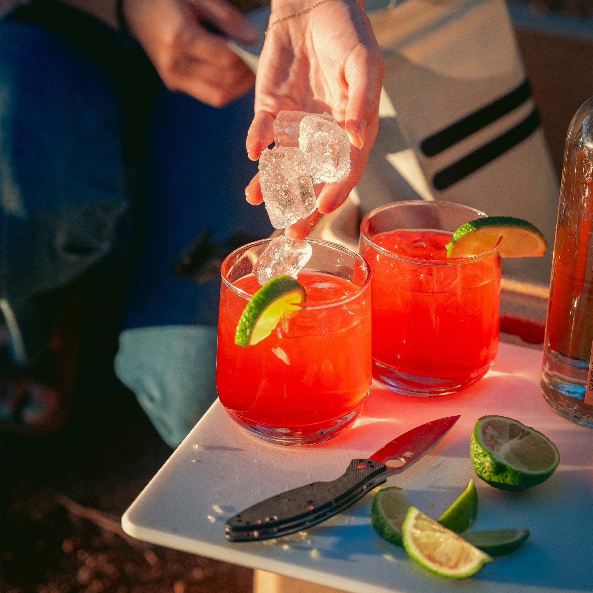 Holds up to 10lbs of cubed ice and has a drain hose that makes drinking your meltwater easy. It measures 17"x12" and pairs well with our medium and larger cooler sizes.